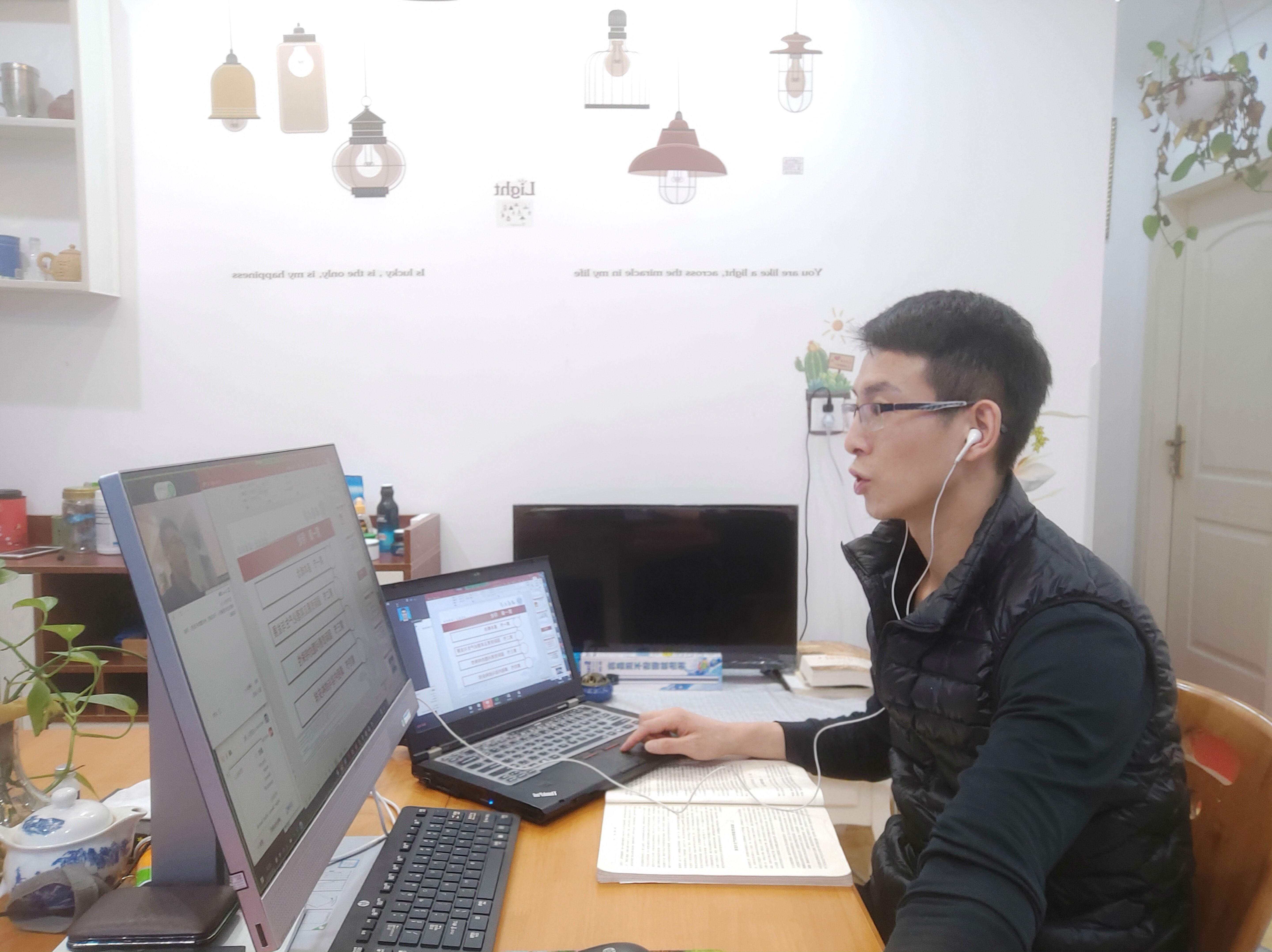 今天是线上教学开课的日子,有线上教学任务的教师和线上学习课程的同学们早早做好了准备。“同学们,大家好,能听到我的声音吗?”“能听到,老师。”教师们通过qq、腾讯会议等平台,以视频摄影、音频录音等方式进行教学,他们作为“新主播”,探索着开始了云课堂。