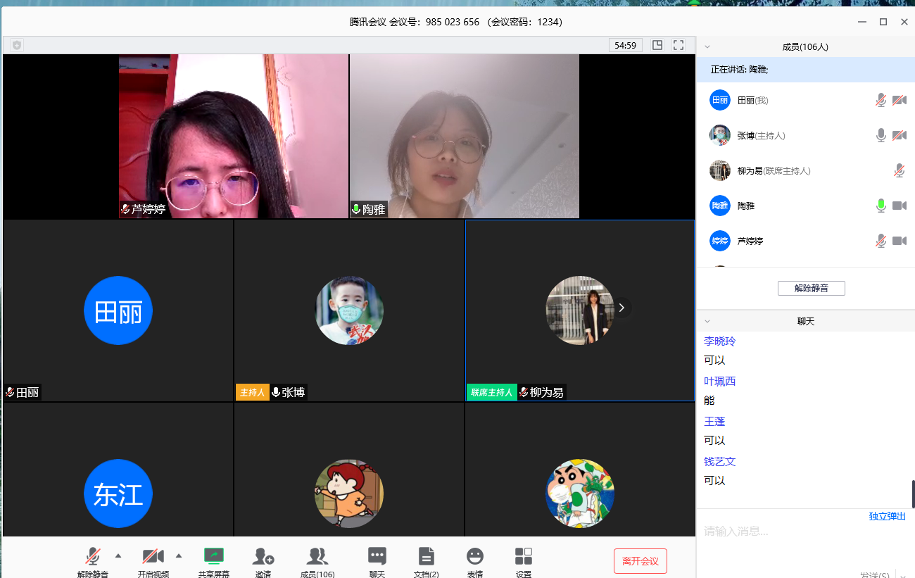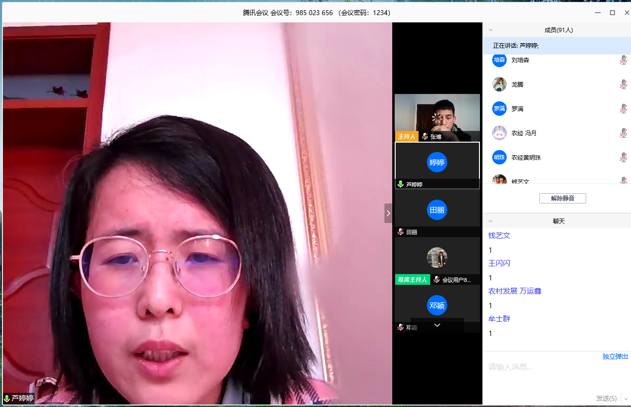 田书记感谢两位老师用心细致的点评,表示之前在学术沙龙上分享的论文根据老师们的点评进行修改后已经被学术期刊录用,希望研究生能积极参与学术沙龙、分享学术论文,争取发表更好、更多的论文,她感谢各位发言同学的精心准备,此次学术沙龙虽然线上开展,但是内容丰富,同学们参与度高,取得良好的效果,她勉励研究生注意防控不可松劲,潜心学术学有所获。
