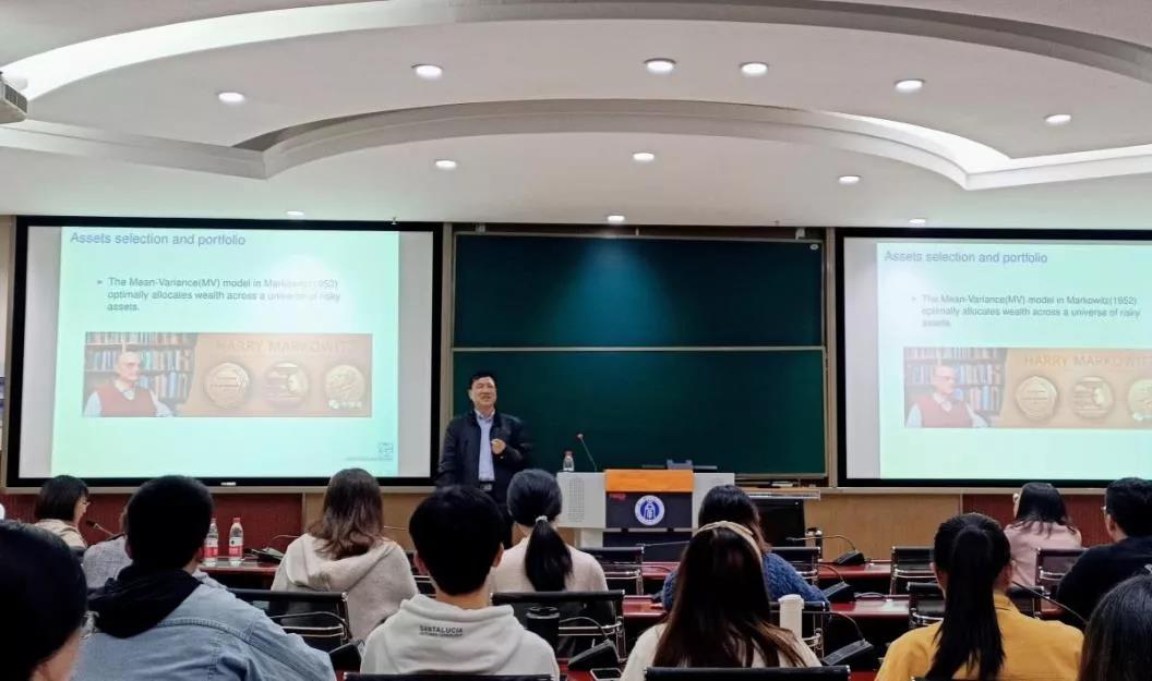第二场讲座由太阳成集团tyc522cc杨丹教授主持,主讲人陈敏研究员以Asset Selection Based on High Frequency Sharpe Ratio为主题,介绍马科维茨的投资组合理论,并强调数学修养和思维的重要性,提出在进行资产选择时,应学会利用丰富的信息和数据,将其转化为统计问题。