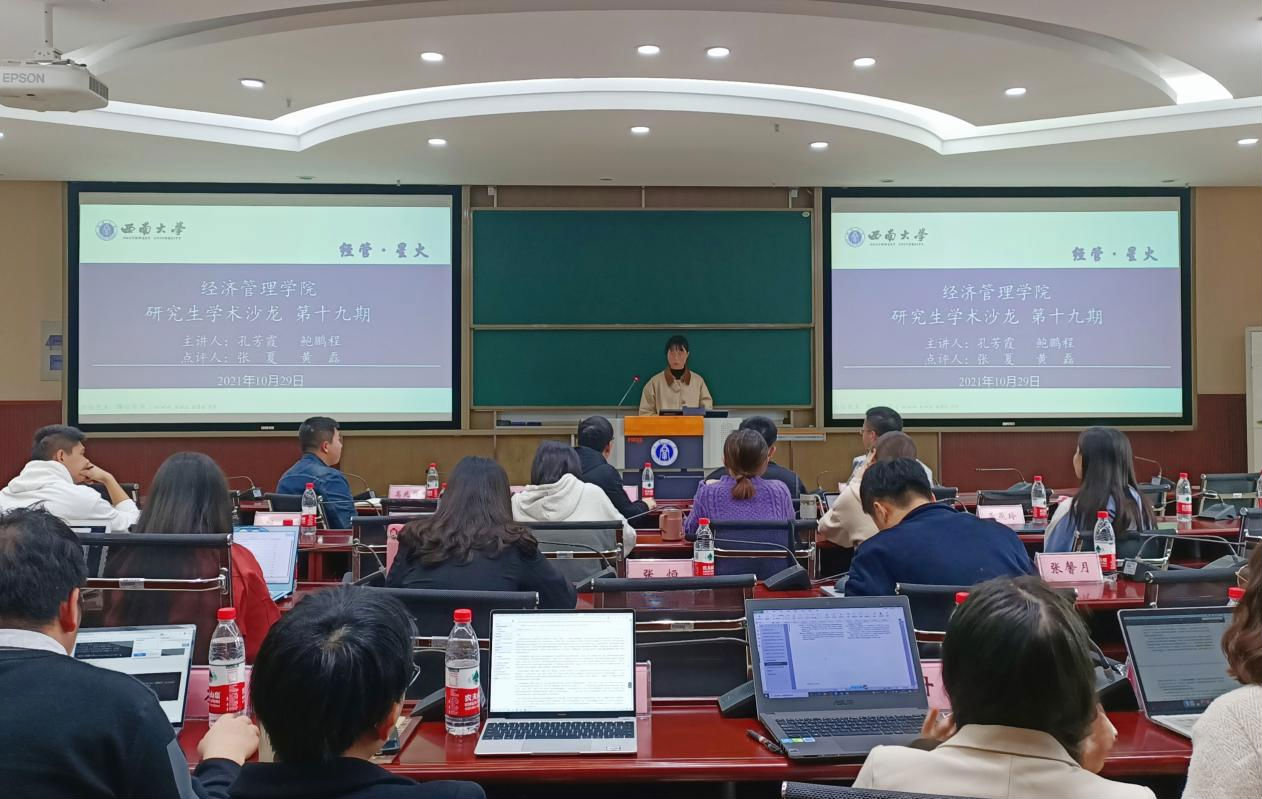 2021年10月29日15:00,太阳成集团tyc522cc第十九期“经管·星火”研究生学术沙龙——博士生专场在公司B304教室举行。本次沙龙由2020级博士生孔芳霞、2021级博士生鲍鹏程担任主讲人,太阳成集团tyc522cc张夏、黄磊老师担任点评人,2020、2021级博士生参加此次学术沙龙。本次沙龙由2021级博士生高兆祥主持。