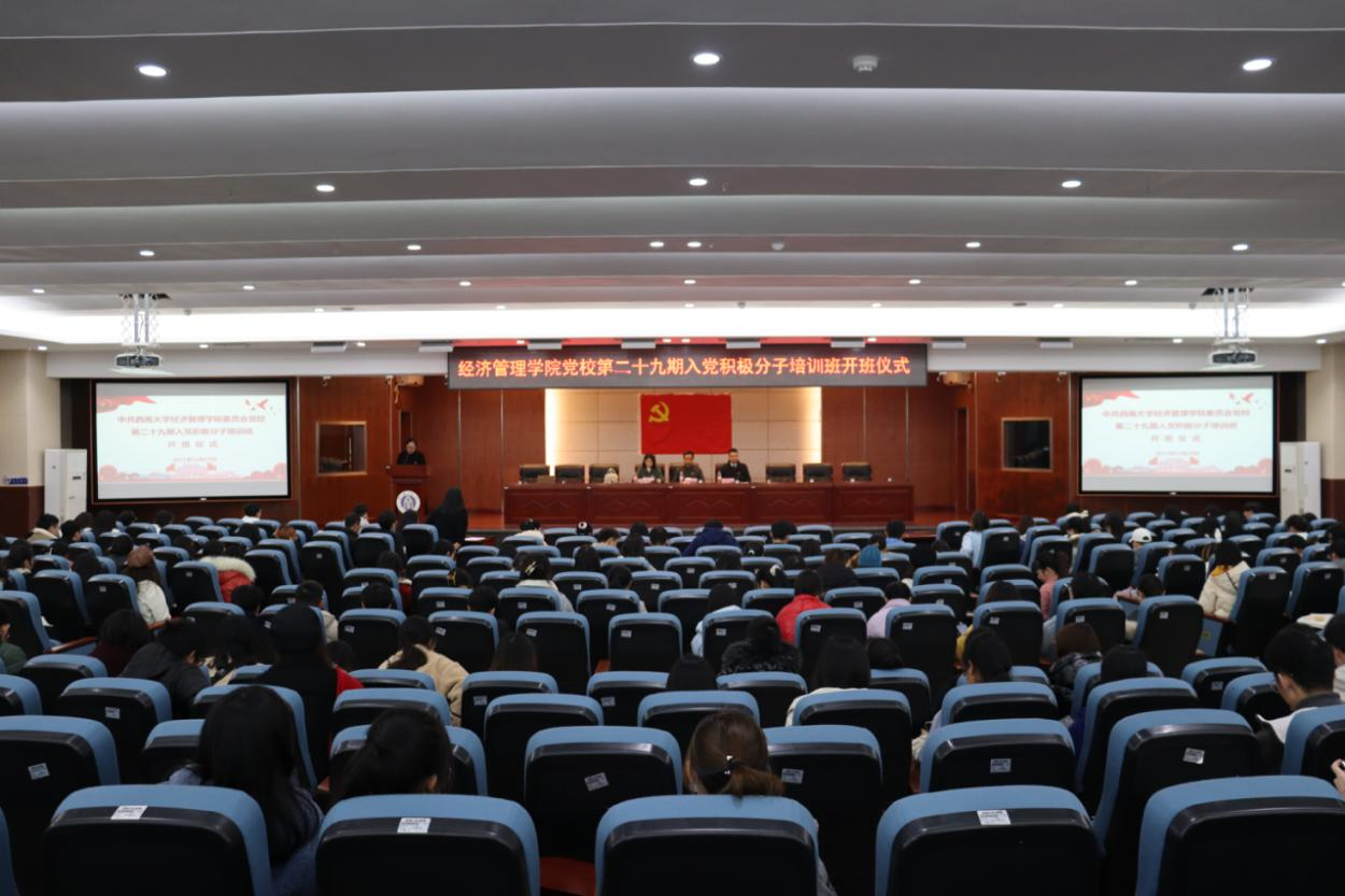 1119午,公司党校第二十九期入党积极分子培训班开班仪式在公司B401报告厅举行。公司党委书记卢跃进党委委员、副经理黄庆华党委委员李沁洋本期培训班班主任187名学员参加了开班仪式。仪式由公司党委组织员钱璐主持。