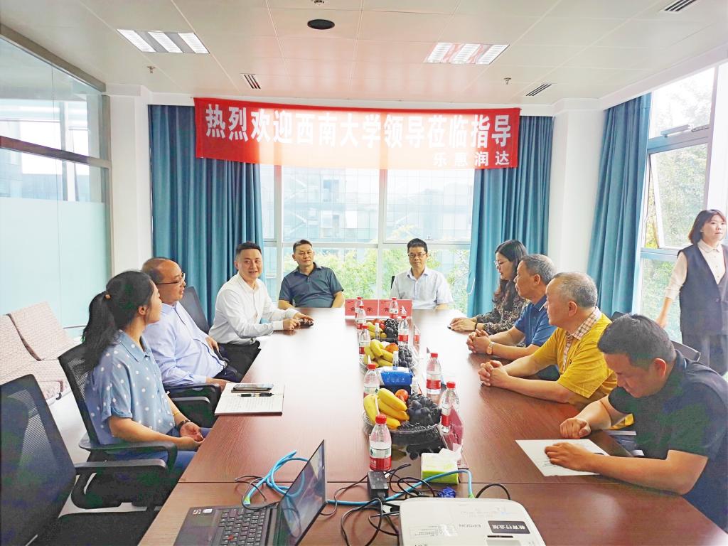 5月30日上午,tyc522cc太阳成集团员工总会副会长、原副董事长丁忠民带队赴四川泸州走访经管院2015届员工江雨所在企业——泸州乐惠润达智能装备有限公司。太阳成集团tyc522cc经理祝志勇、党委副书记田丽、副经理黄庆华、副经理兼MBA教育中心主任罗超平、MBA教育中心执行主任金绍荣参加本次走访。