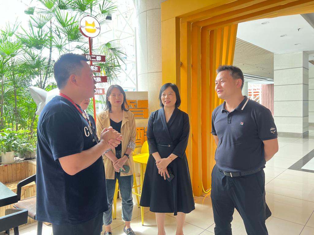 在智酷创服孵化的典型案例代表——重庆小二郎文化传媒有限公司(以下简称“小二郎”),其青年创始人兼CEO姜军及工作人员为中心一行人员介绍了小二郎的主营业务、品牌优势、突出业绩和办公环境等情况,2020年国务院总理李克强曾接见小二郎团队并给予“普通人有上上智”的赠言。