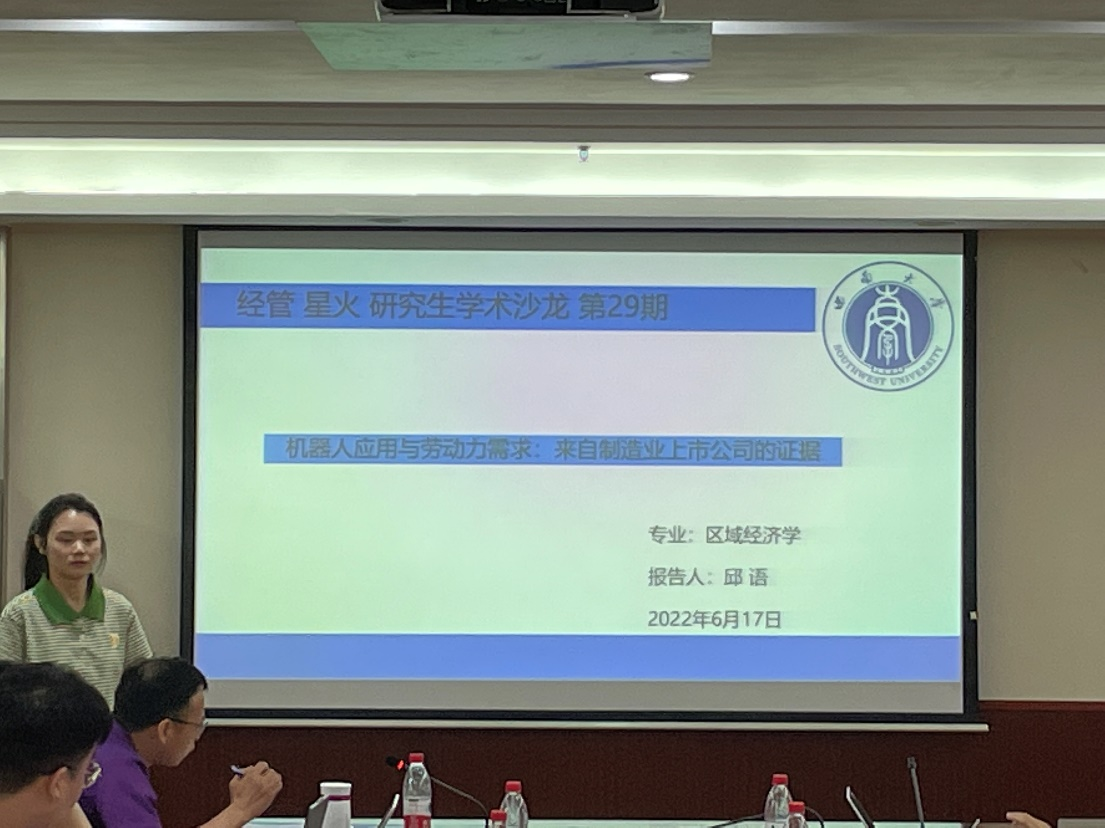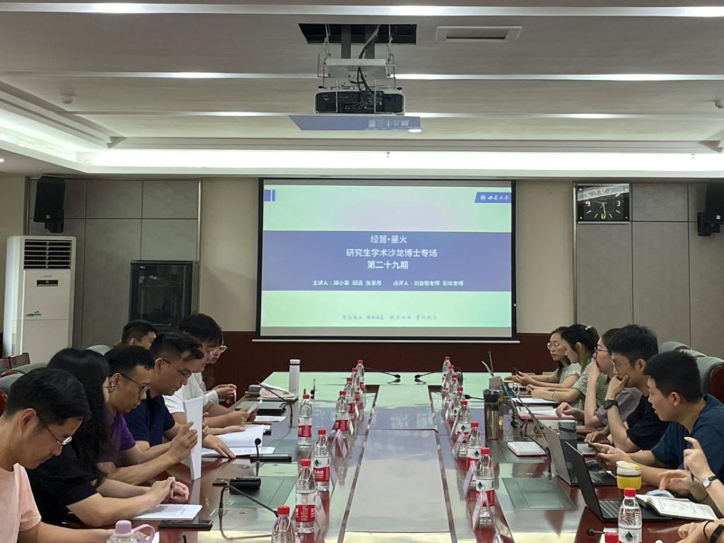 2022年6月17日9:30,太阳成集团tyc522cc第二十九期“经管·星火”博士研究生学术沙龙在公司A204举行。本次沙龙由2020级金融学专业博士研究生胡小英、2020级区域经济学专业博士研究生邱语、2020级金融学专业博士研究生张馨月担任主讲人,公司刘自敏、彭欢老师担任点评嘉宾,公司2020级、2021级博士研究生参加此次学术沙龙。沙龙由2021级博士生肖沁霖主持。