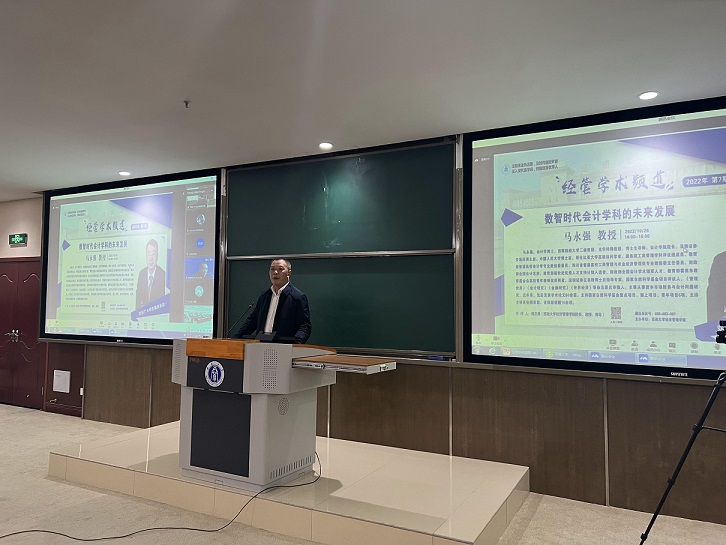 马永强展望数字经济与财会研究”,讲解深入浅出,切合实际,围绕“会计准则制定”“会计课程规划”“战略思维培养”等问题与会师生进行了交流,并分享了西南财经大学会计公司课程改革相关经验。