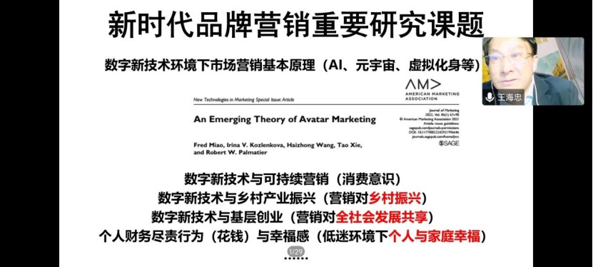 王海忠从“品牌数字化超链接——平台体量强化趋势下品牌突围之道”着手,分别解析了社交主导、电商主导、服务主导和人物IP主导四个方面的品牌数字超链接形式,阐述了品牌数字化营销新理论,明确数字化身的定义及分类,梳理了品牌数字超链接战略的理论创新方向,让与会师生了解到新时代品牌数字超链接战略的内涵,并提供了新的研究思路。