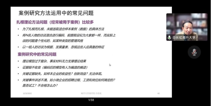 2022年123日,南开大学公司经理白长虹教授应公司邀请线上为公司师生作了题为面向实践的管理研究”的学术讲座,讲座由公司经理祝志勇教授主持。