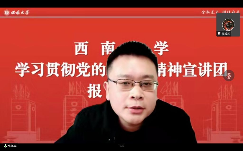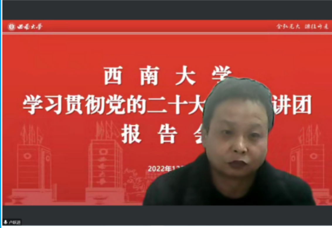 张其光对本次宣讲进行了总结。他指出此次宣讲主题鲜明、内涵丰富,既有政治高度和思想深度,又有理论温度和实践厚度,对于深刻理解、准确把握党的二十大精神实质具有很强的针对性和指导性。他介绍到公司成立了学习贯彻党的二十大精神宣讲团,将实现党的二十大精神宣讲全覆盖,希望全院干部师生切实把思想和行动统一到党的二十大精神上来,把智慧和力量凝聚到落实党的二十大确定的各项任务上来,以实干实绩谱写高质量发展的西大经管篇章。