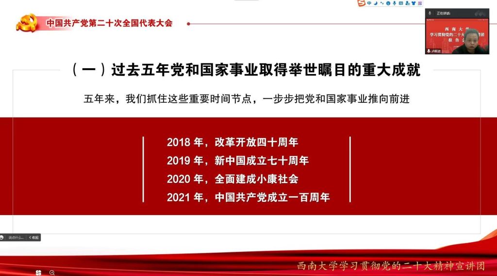 20221230日下午,经济管理公司党委通过线上方式举行了学习贯彻党的二十大精神宣讲会,公司学习贯彻党的二十大精神宣讲团成员、公司党委委员、经济管理公司党委书记卢跃进作专题报告,公司全体教职工参加会议。会议由公司党委副书记、纪委书记张其光主持。