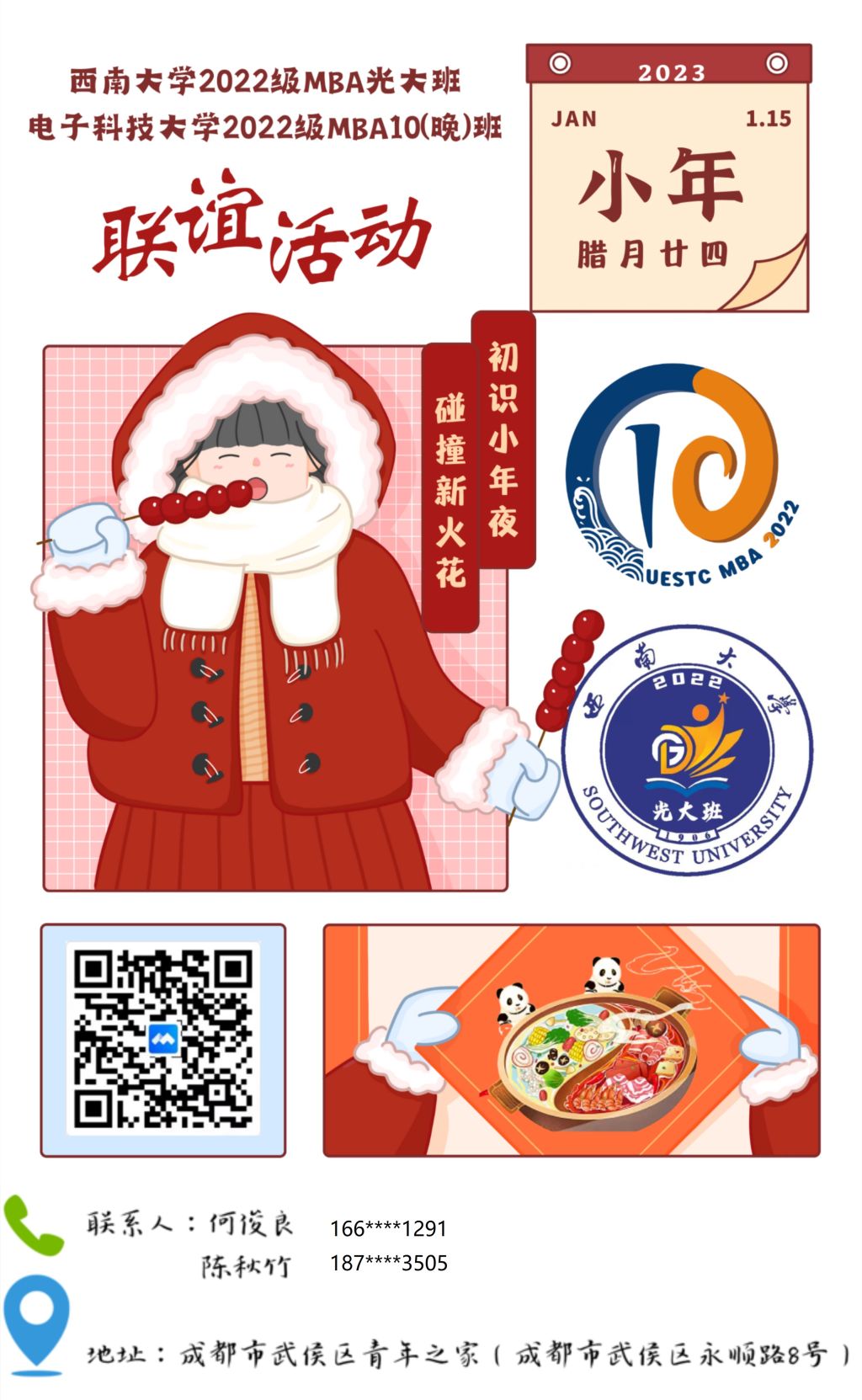 此次联谊活动由tyc522cc太阳成集团MBA2022级光大班和电子科技大学MBA2022级10班共同发起组织,两个班的同学为活动做了充分的准备。