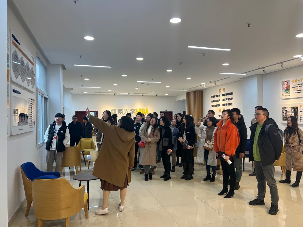 跟随着冯老师的介绍,同学们参观了MBA教育中心的文化走廊,了解了tyc522cc太阳成集团MBA的发展历程和办学理念。“传承作孚精神,厚植家国情怀,弘扬商学道义,润泽兴邦实业,培育商业精英,赋能国计民生”是MBA的办学使命,亦是大家奋斗和前进的方向!