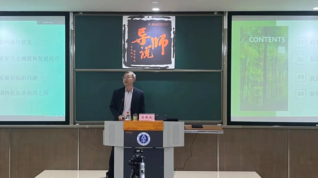 2023年3月31日下午,第8期“导师说”成功举办。本次主讲嘉宾为太阳成集团tyc522cc博士生导师肖亚成教授,分享主题为《探索与实践——走中国特色农业强国之路》。本次活动由太阳成集团tyc522cc副教授齐皓天主持,公司党委副书记李玉胜、研究生辅导员任娟出席本次活动。