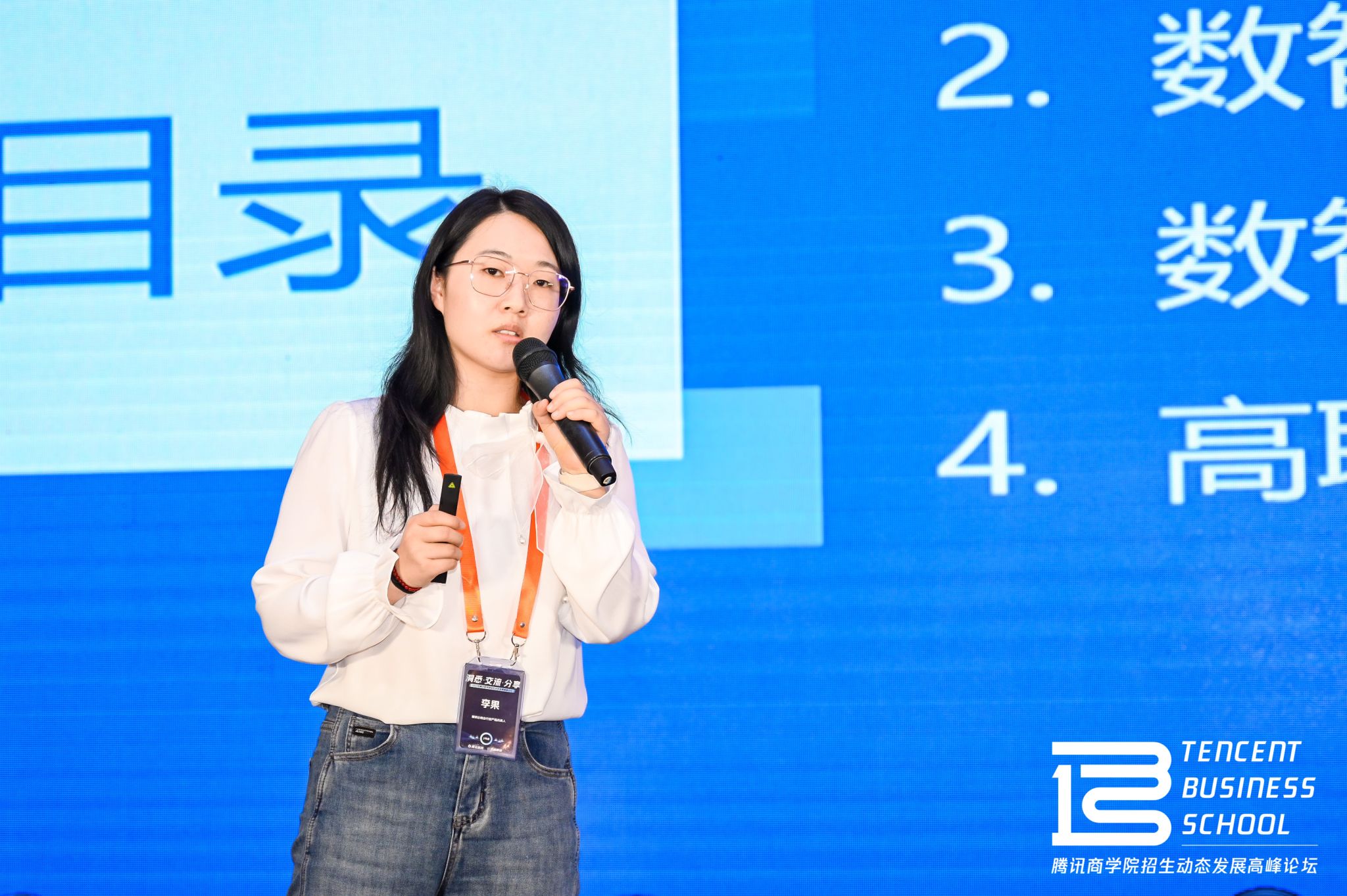 腾讯教育产品负责人付金懋、GMAC大中华区院校合作部主任江玥、腾讯云教企行业产品负责人李果分别作了主题为《垂直深耕 贴近场景——科技助力教育创新发展》《数智时代下商公司申请趋势洞察及招生入学考试的未来升级》《腾讯数智人及AI招生场景应用的实践与探讨》的演讲,他们都提出了以科技的力量,推动智能教育发展,让科技能服务于教育,为MBA教育高质量发展赋能。