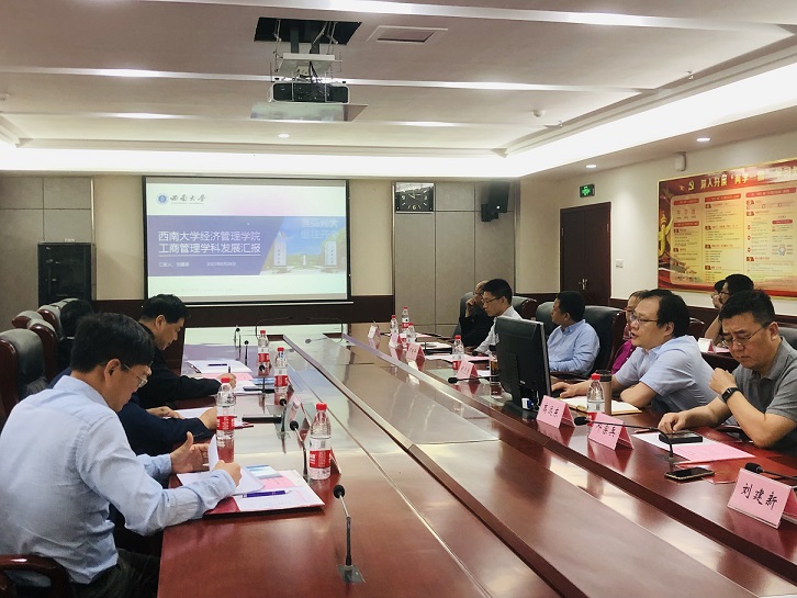 工商管理系主任邓宗兵教授从工商管理一流本科专业建设目标完成情况、专业特色、工作开展情况、存在问题和改进措施等进行了汇报;刘建新对工商管理学科发展历程、招生情况、科学研究、服务社会等内容进行了汇报,指出了工商管理学科在国家级人才培养、科研梯队打造、高水平项目及代表性成果等方面存在的问题。与会专家围绕工商管理一流本科建设和学科发展提出了很多宝贵意见和建议,与师生进行了互动交流,让公司师生对工商管理学科属性和特色有了更深刻的理解和认识,对于工商管理学科提质进阶具有重要意义。