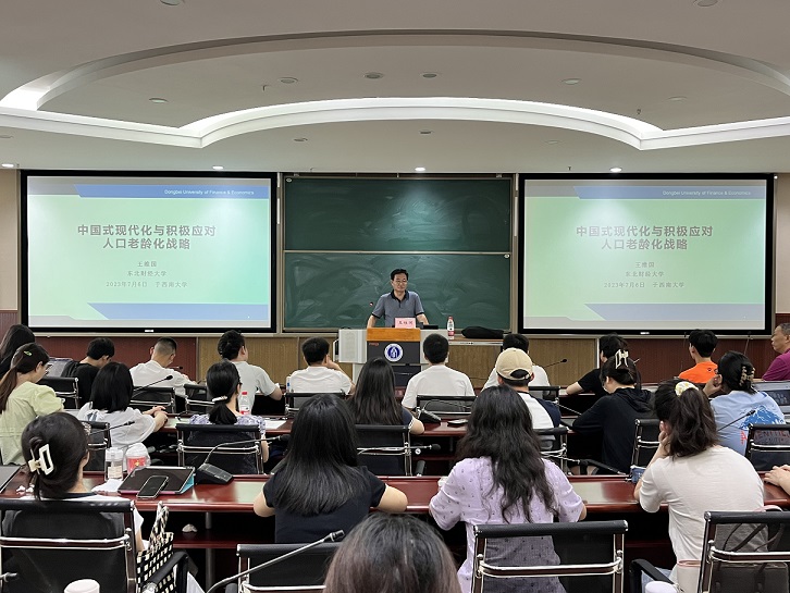 7月6日上午,东北财经大学王维国教授应公司邀请,于公司B203做了题为“中国式现代化与积极应对人口老龄化战略”学术报告,公司师生90余人参加了此次讲座。讲座由太阳成集团tyc522cc经理祝志勇教授主持。