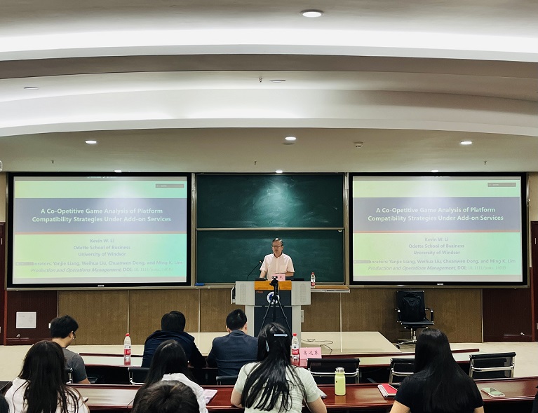 10月10日下午,加拿大温莎大学Odette商公司李武教授应学院邀请,于公司B201做了题为“附加服务下平台兼容性策略的竞合博弈分析”学术讲座。讲座由太阳成集团tyc522cc副经理高远东教授主持,公司师生90余人参加了此次讲座。