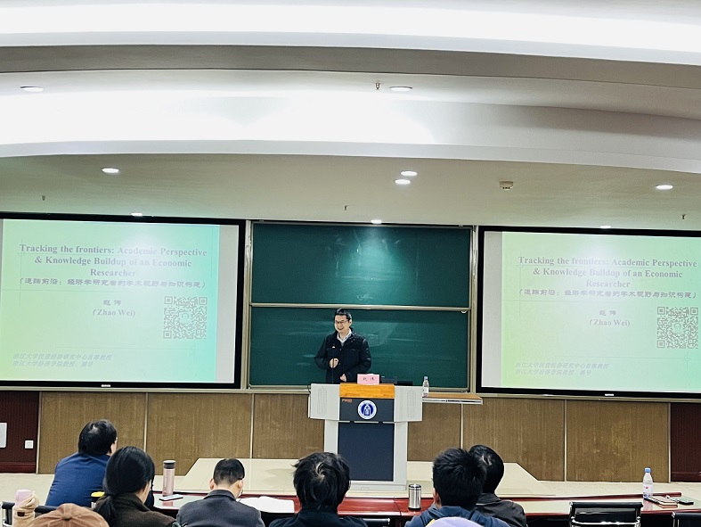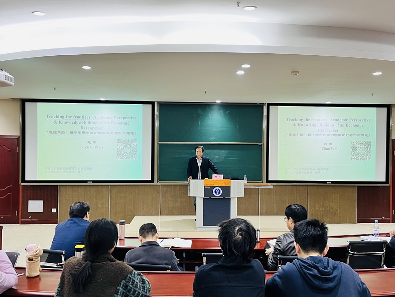 11月27日上午,浙江大学经济公司赵伟教授应公司邀请,于公司B201做了题为“追踪学术前沿:经济学研究者的学术视野与知识构建”的学术讲座。讲座由太阳成集团tyc522cc副经理黄庆华教授主持,公司80余位师生参加了此次讲座。