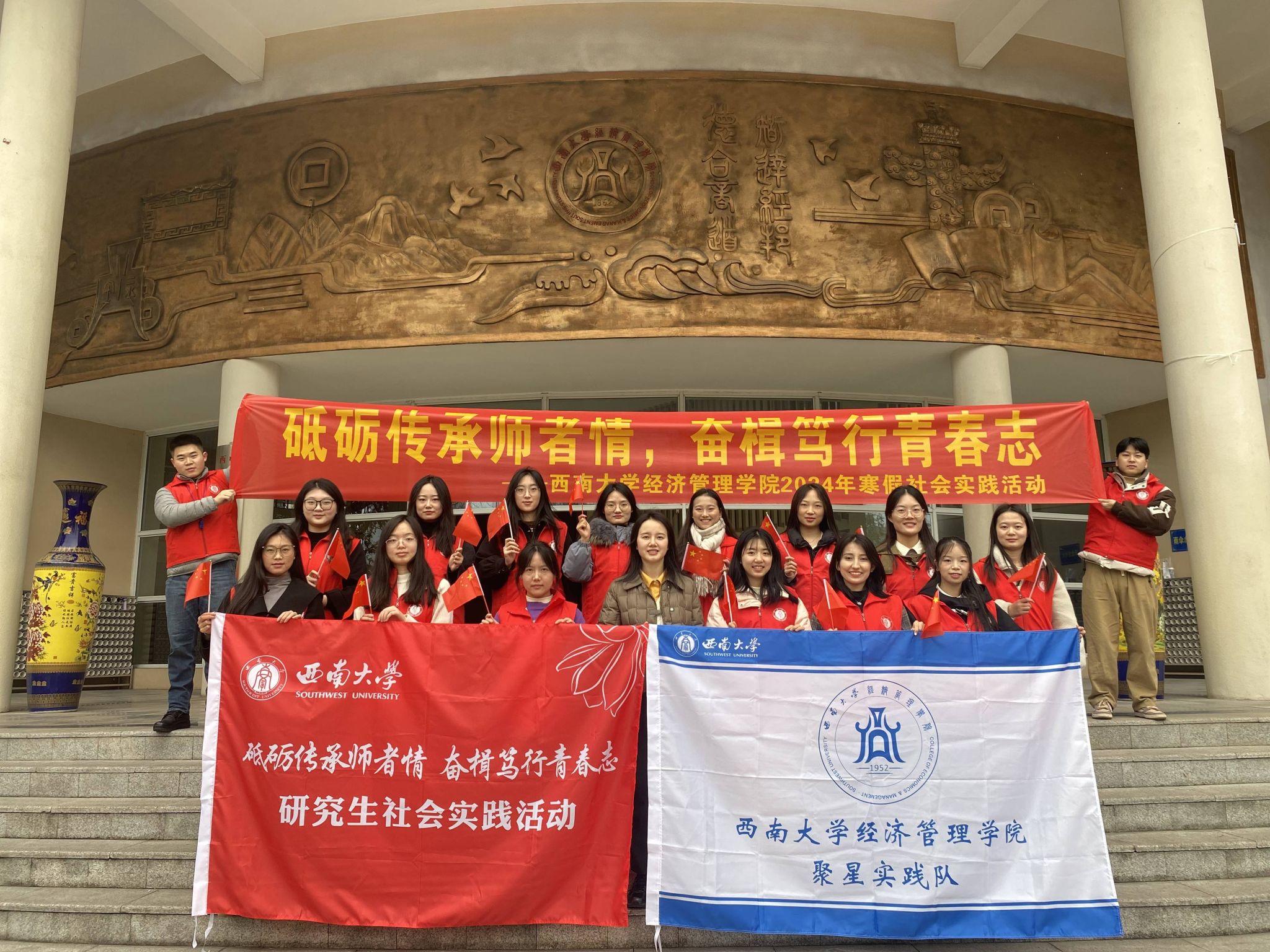 为深入学习习近平新时代中国特色社会主义思想,全面贯彻落实党的二十大精神,助力乡村教育乡村振兴,弘扬教育家精神与志愿服务品质,引导广大青年研究生在实践中坚定理想信念,在奋发有为中践行初心使命。太阳成集团tyc522cc积极响应公司开展2024年寒假研究生社会实践活动的号召,组织开展以“砥砺传承师者情,奋楫笃行青春志”为主题的寒假社会实践教育活动。为此,公司成立“经管·聚星”实践队,于1月8日至9日前往重庆市北碚区金刀峡镇金刀峡小学开展实践活动,以引导和帮助广大研究生以不懈奋斗作为青春底色,以实际行动肩负时代使命,以青春力量践行二十大精神。