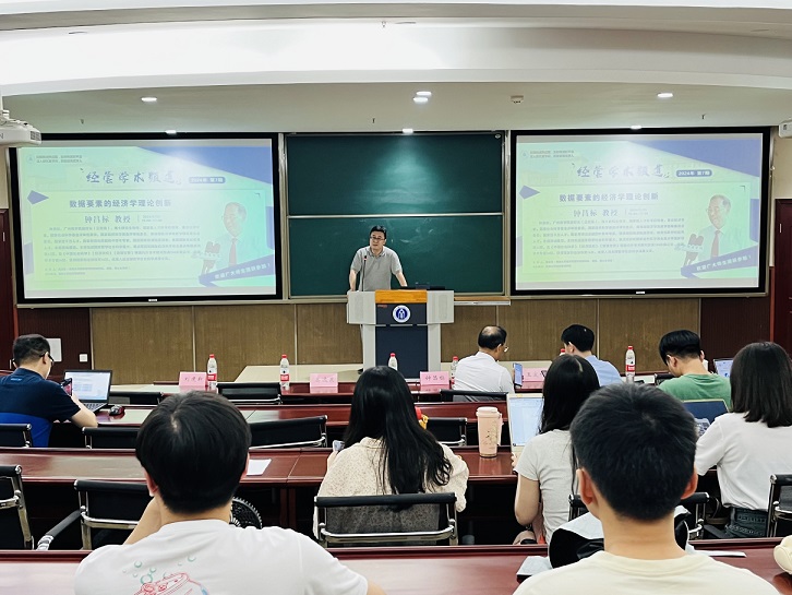 5月25日下午,广州商公司副董事长钟昌标教授应公司邀请在B201报告厅作了题为“数据要素的经济学理论创新”的学术讲座。讲座由太阳成集团tyc522cc副经理高远东教授主持,公司70余位师生参加了此次讲座。