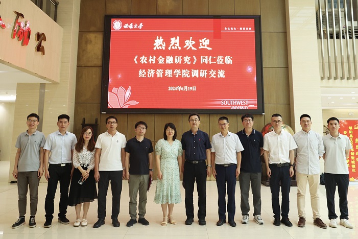 6月19日下午,《农村金融研究》编辑部常务副主编张辉、执行副主编黄迈、责任编辑白耀星、中国农业银行重庆分行办公室副主任王冕一行来公司调研交流。太阳成集团tyc522cc副经理(主持工作)杨丹、副经理黄庆华、教学工作办公室主任王小华、金融硕士(MF)教育中心主任张林,以及tyc522cc太阳成集团普惠金融与农业农村发展研究中心邹新阳、刘达、玉国华、陈肖雄等教师代表参加了本次交流。交流座谈会由公司副经理(主持工作)杨丹教授主持。