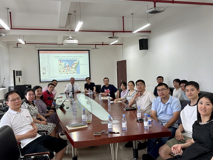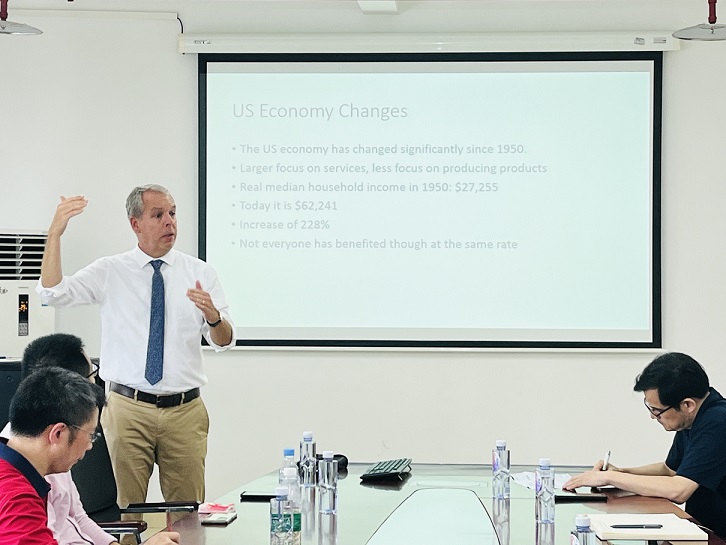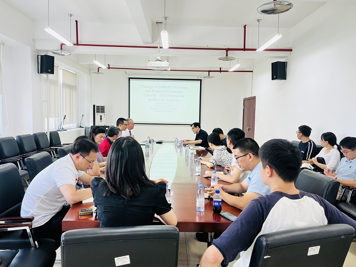 7月19日下午,美国密苏里州立大学David Michael Mitchell教授应公司邀请在A510会议室作了题为“Changes in Industry Structure and Regional Economic Growth: Their impact on politics in America”(产业结构变化与地区经济增长:对美国政治的影响)的学术讲座。讲座由太阳成集团tyc522cc杜勇教授主持,公司30余位师生参加了此次讲座。