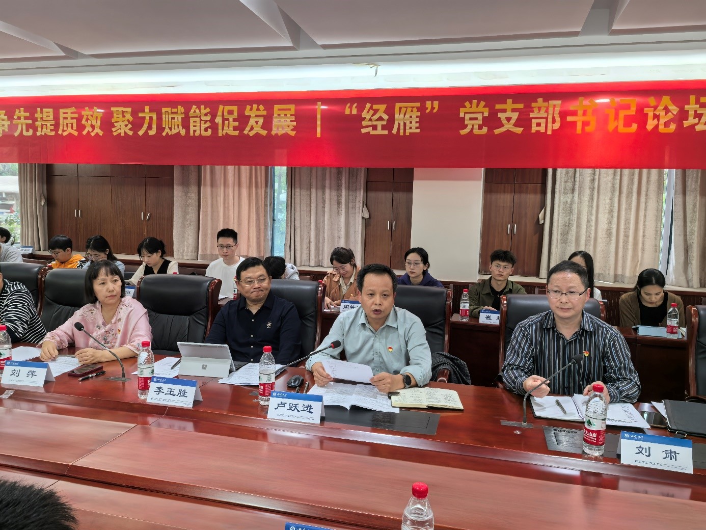 为深入学习贯彻党的二十大精神,进一步推进党建“双创”工作,全面提高党建工作质量,10月18日下午,公司“对标争先提质效,聚力赋能促发展”“经雁”党支部书记论坛暨党建“双创”工作推进会,在公司A204会议室举行。公司党委组织部副处级组织员刘肃应邀出席会议。公司党委书记卢跃进、党委副书记李玉胜、副处级组织员刘萍、副经理黄庆华,党委委员、支部书记及支委共计70余人参加会议,会议由刘萍主持。