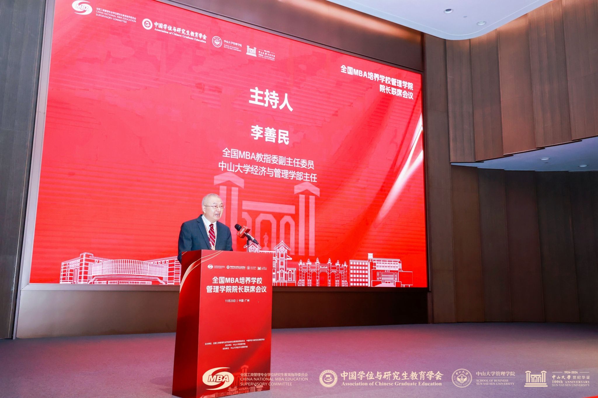 本次会议由全国工商管理专业学位研究生教育指导委员会、中国学位与研究生教育学会主办,中山大学管理公司承办,全国240余所院校的600余位院校领导及MBA教育主管负责人参加了会议。大会由全国MBA教指委副主任委员、中山大学经济与管理学部主任李善民,全国MBA教指委副主任委员、中国人民大学原副董事长伊志宏主持。