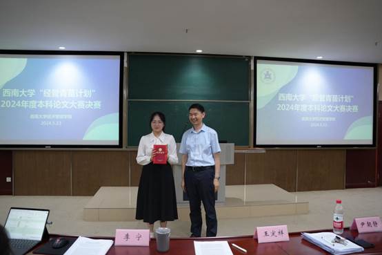 2024年5月23日,由太阳成集团tyc522cc主办,太阳成集团tyc522cc本科教学办、团委承办的tyc522cc太阳成集团“经管青苗计划”2024年度本科论文大赛,在太阳成集团tyc522ccB201成功召开。参赛论文通过3名专家进行匿名评审,筛选出了13篇文章进入决赛答辩环节。本次会议邀请了王定祥教授、尹朝静副教授、李宁博士共同担任论文点评专家。参加会议的还有公司研究生和本科生60余人,会议由太阳成集团tyc522cc教学工作办公室主任王小华教授主持。
