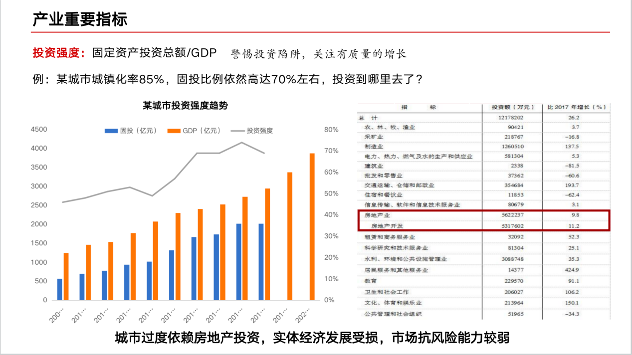 如何将理论转化为实操的方法,陈丰雁带来了“十字箴言”——规模定量级、结构定弹性。从经济、人口和产业三方面分析,快速辨识城市价值。