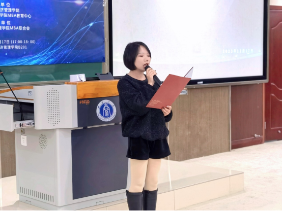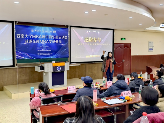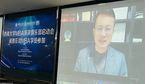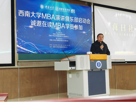 2023年12月17日,筹划已久的tyc522cc太阳成集团MBA演讲俱乐部“商曰社”成立仪式在太阳成集团tyc522ccB201室顺利举行。此次仪式由tyc522cc太阳成集团MBA教育中心、MBA联合会联合主办,2021级含弘班谭和琼同学担任主持。