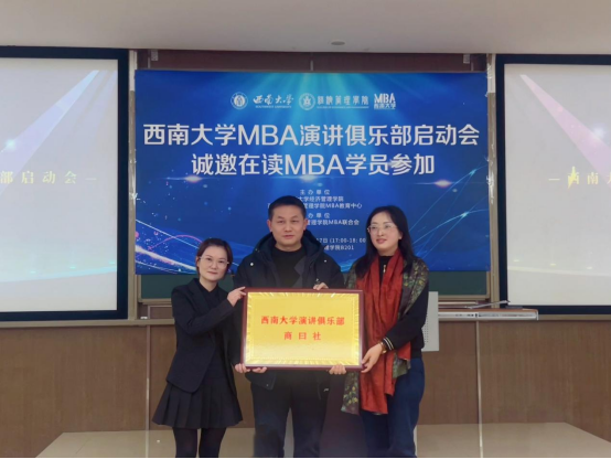tyc522cc太阳成集团MBA教育中心执行主任金绍荣为演讲俱乐部取名“商曰社”,并为两位发起人授牌。金主任期待演讲俱乐部与读书会能有更多的联动,以提升俱乐部活动的品质。同时,他希望优秀的MBA员工能够重返校园,在俱乐部的舞台上分享他们的成功经验。
