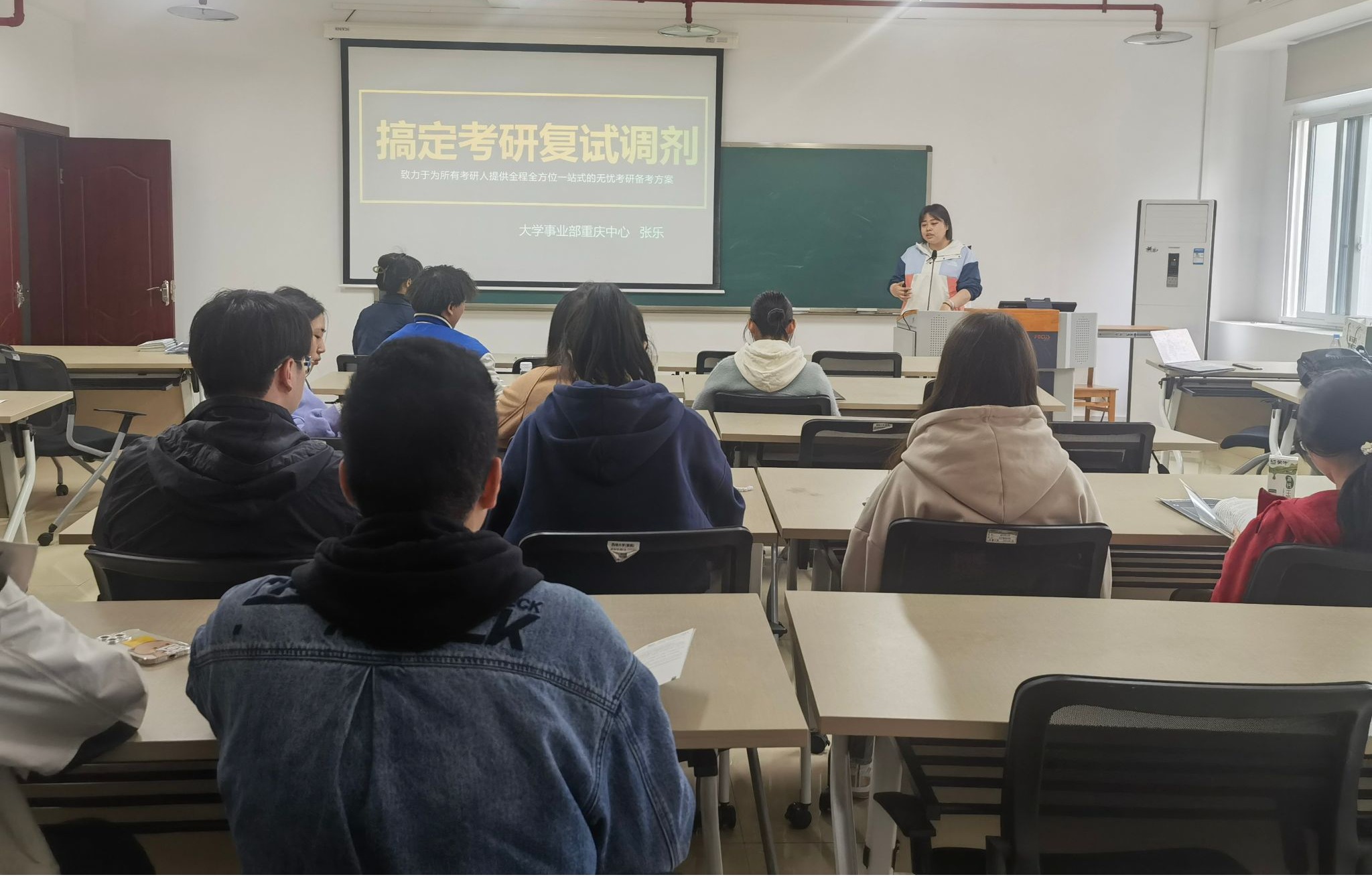 为帮助公司2024届考研学子熟悉硕士研究生招生复试和复试调剂相关政策,提升复试能力,增强复试备考信心,公司于3月15日下午在A505教室举办2024届本科生考研复试指导培训会。本次培训会特别邀请了新东方大学事业部重庆中心资深讲师担任主讲嘉宾,2024届本科生辅导员叶海英、吴玲玲,2024届考研学子参与了本次培训会。