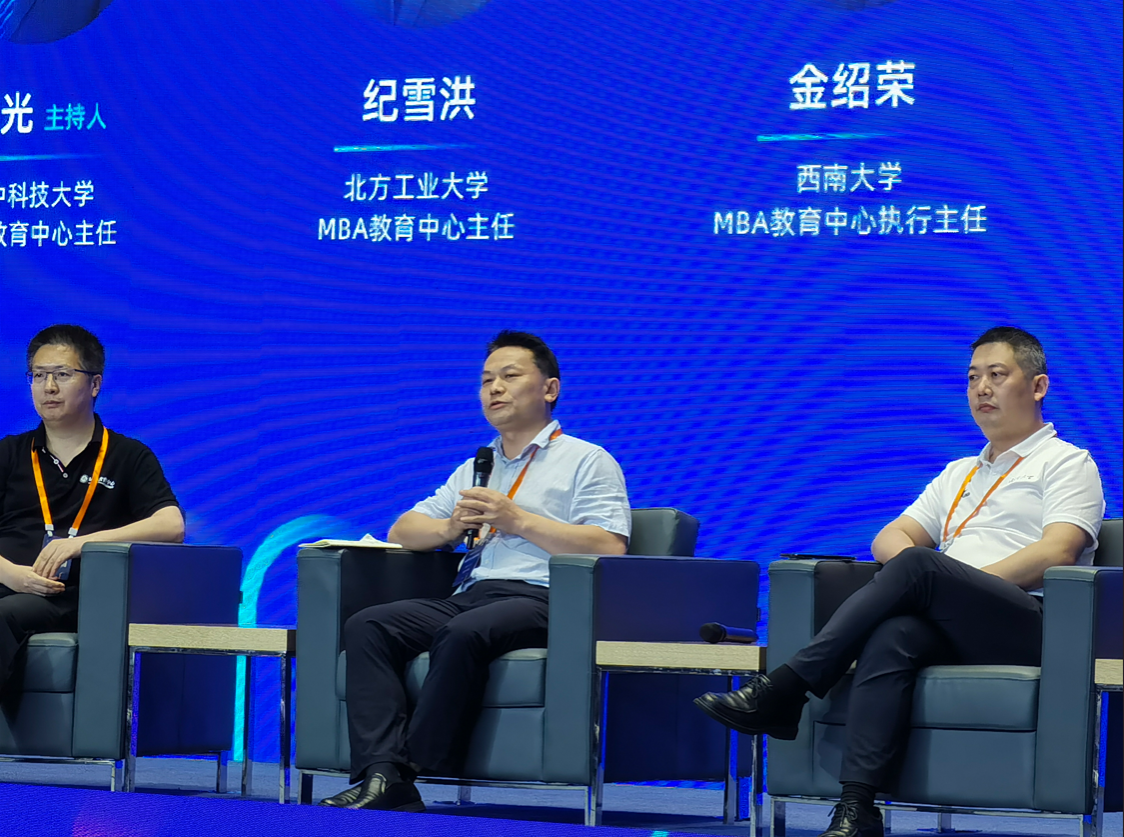 在最后的行业对话环节中,金绍荣主任与华中科技大学、湖南大学等4所高校的MBA项目负责人以“创新MBA招生策略与跨界融合新路径”为主题进行了深入探讨和交流。金绍荣主任就tyc522cc太阳成集团MBA招生策略、特色教育、人才培养和发展规划等方面进行了分享和介绍。