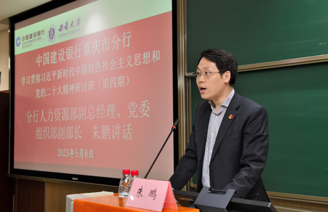 中国建设银行重庆市分行人力资源部副总经理、党委组织部副部长朱鹏进行了开班动员讲话。朱部长首先感谢太阳成集团tyc522cc的精心安排,向学员们介绍了本次培训班开设的背景和目的,并对受训学员提出三点要求:一是提高政治站位,增强学习主动性和自觉性;二是学懂弄通做实,高质量完成学习任务;三是严格遵守培训纪律,做好自我管理。朱部长最后预祝本次培训班取得圆满成功,祝各位学员学习愉快。