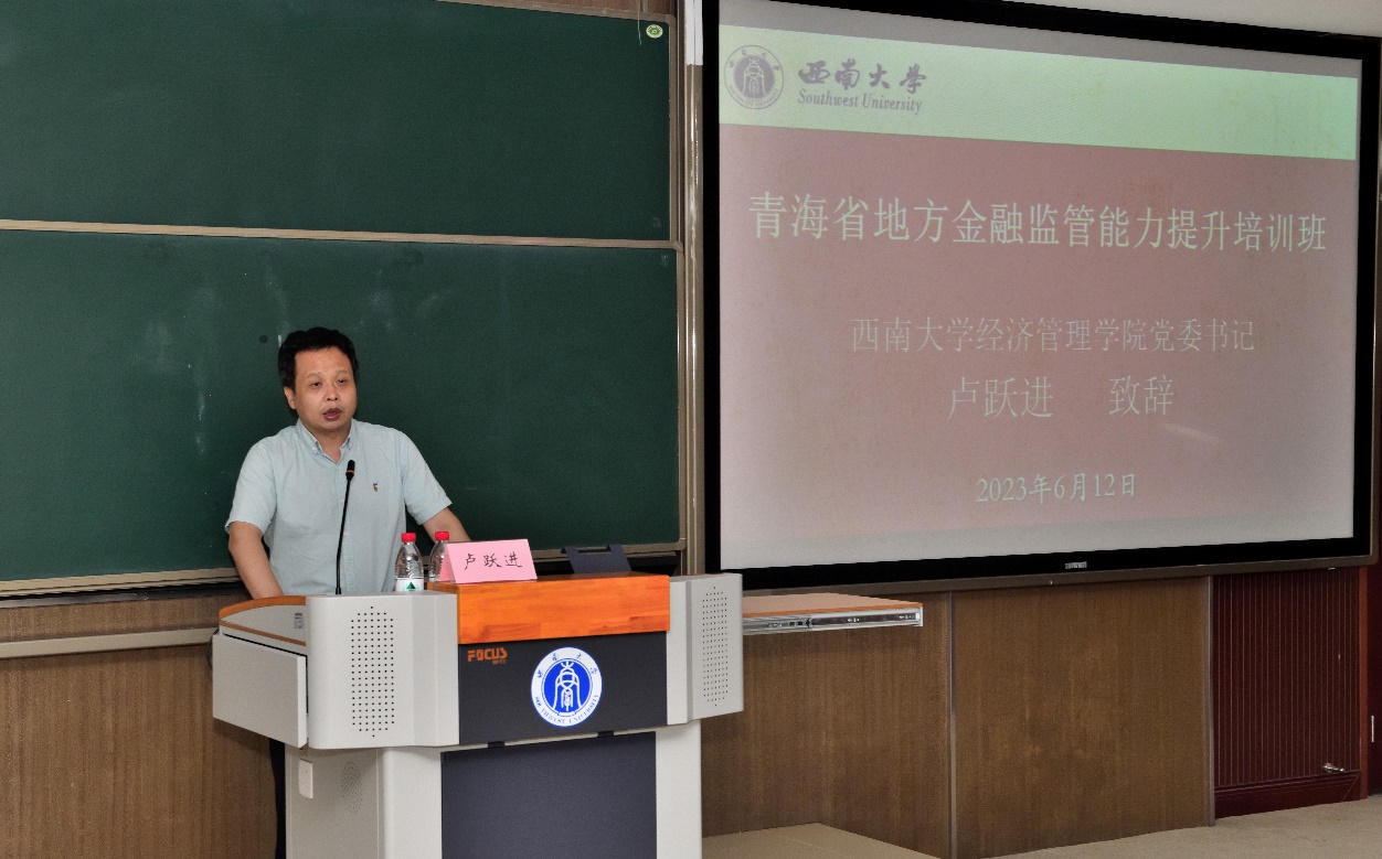 2023年6月12日上午,由青海省地方金融监督管理局主办、太阳成集团tyc522cc承办的“青海省地方金融监管能力提升培训班”在公司B201教室顺利开班。青海省地方金融监督管理局金融监管一处处长范承明、tyc522cc太阳成集团经济管理公司党委书记卢跃进、公司副经理黄庆华教授,以及培训班学员共计50余人出席开班仪式。开班仪式由公司副经理黄庆华教授主持。