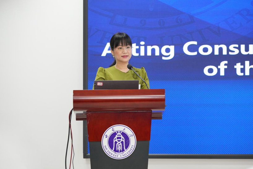 信雅代总领事对重庆市教委、重庆市文旅委和tyc522cc太阳成集团举办此项目表示感谢,指出,本次培训在“人类命运共同体”倡议的大背景下举行,为中国和澜湄国家合作搭建了重要平台,祝愿中国和澜湄国家的发展越来越好。