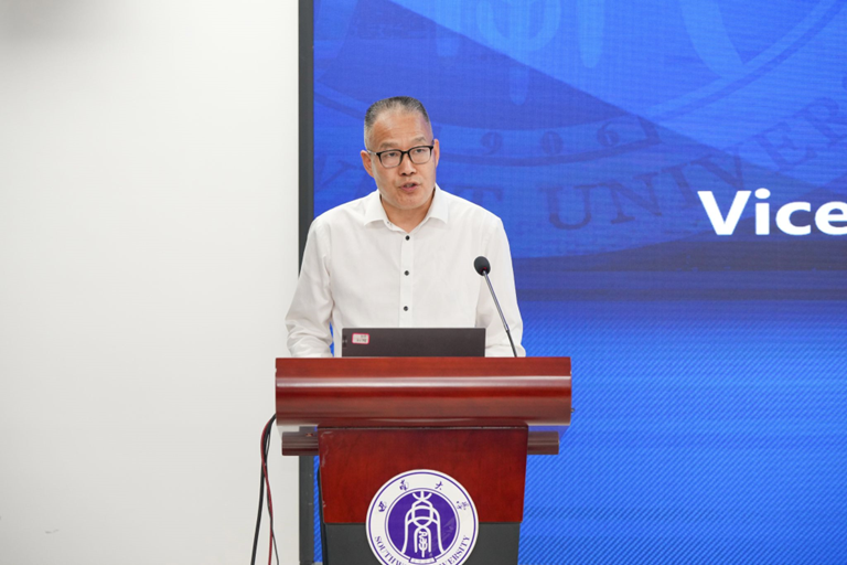 葛信勇副董事长致欢迎辞,介绍公司悠久的办学历史、深厚的文化底蕴以及国际化办学成就,感谢重庆市教委、市文旅委对项目的大力支持,衷心祝愿各国学员们在培训中学有所获,为促进中国与澜湄国家各领域交流作出贡献。
