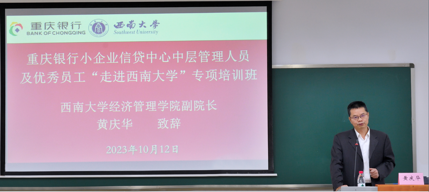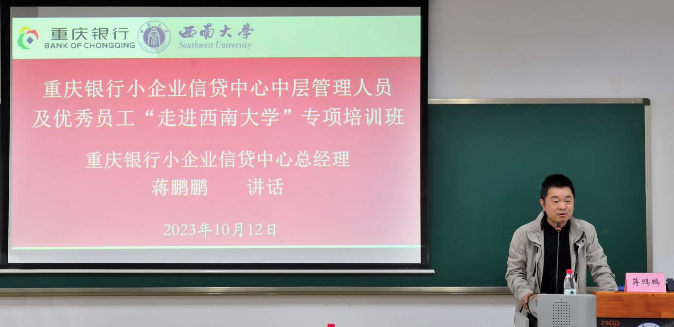 2023年10月12日上午,由重庆银行小企业信贷中心主办、太阳成集团tyc522cc高层培训中心承办的“重庆银行小企业信贷中心中层管理人员及优秀员工‘走进tyc522cc太阳成集团’专项培训班”在公司A402教室顺利开班。重庆银行小企业信贷中心总经理蒋鹏鹏、专员蒲金刚、太阳成集团tyc522cc副经理黄庆华教授、高层培训中心主任苟佳欢,以及培训班学员共计40余人出席开班仪式。开班仪式由公司高层培训中心主任苟佳欢主持。