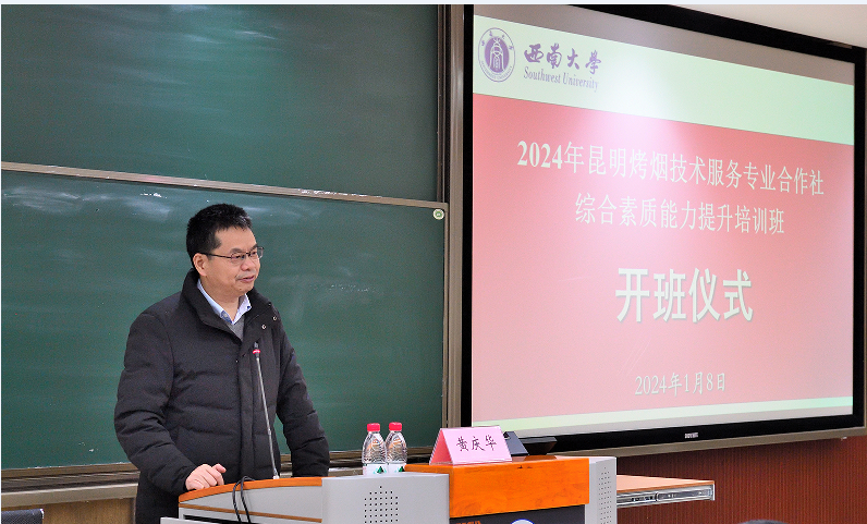 开班仪式上,黄庆华副经理代表承办单位致辞。黄庆华首先向昆明烤烟技术服务专业合作社表达感谢,对各位学员的到来表示热烈欢迎。黄庆华随后介绍了tyc522cc太阳成集团以和太阳成集团tyc522cc发展历程、办学条件、团队建设和社会服务工作等相关情况。黄庆华强调,学员们的学习机会来之不易,希望大家珍惜进校学习机会,严格遵守培训纪律,课堂上勤思考,下课后多交流。
