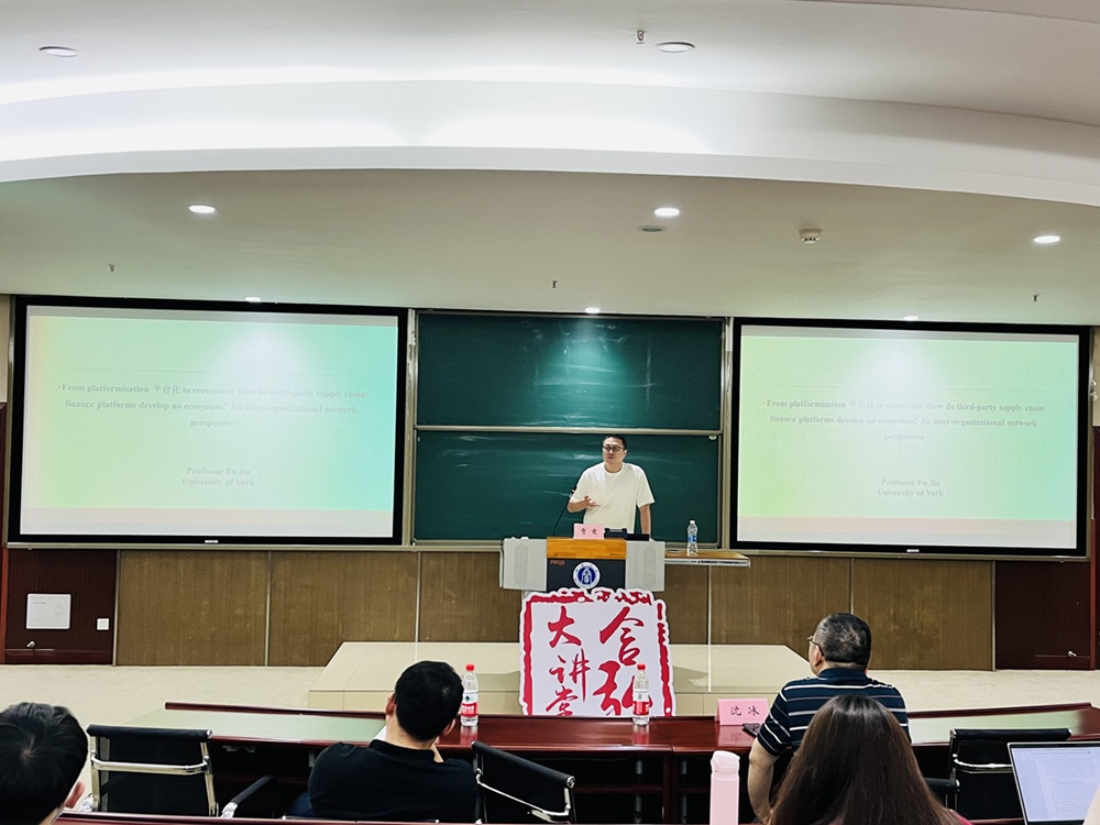 2025年5月6日,英国约克大学贾甫教授应公司邀请在B201报告厅围绕“从平台化到生态系统:第三方供应链金融平台如何构建生态系统?——基于组织间网络视角”的主题开展了学术讲座。讲座由财政...