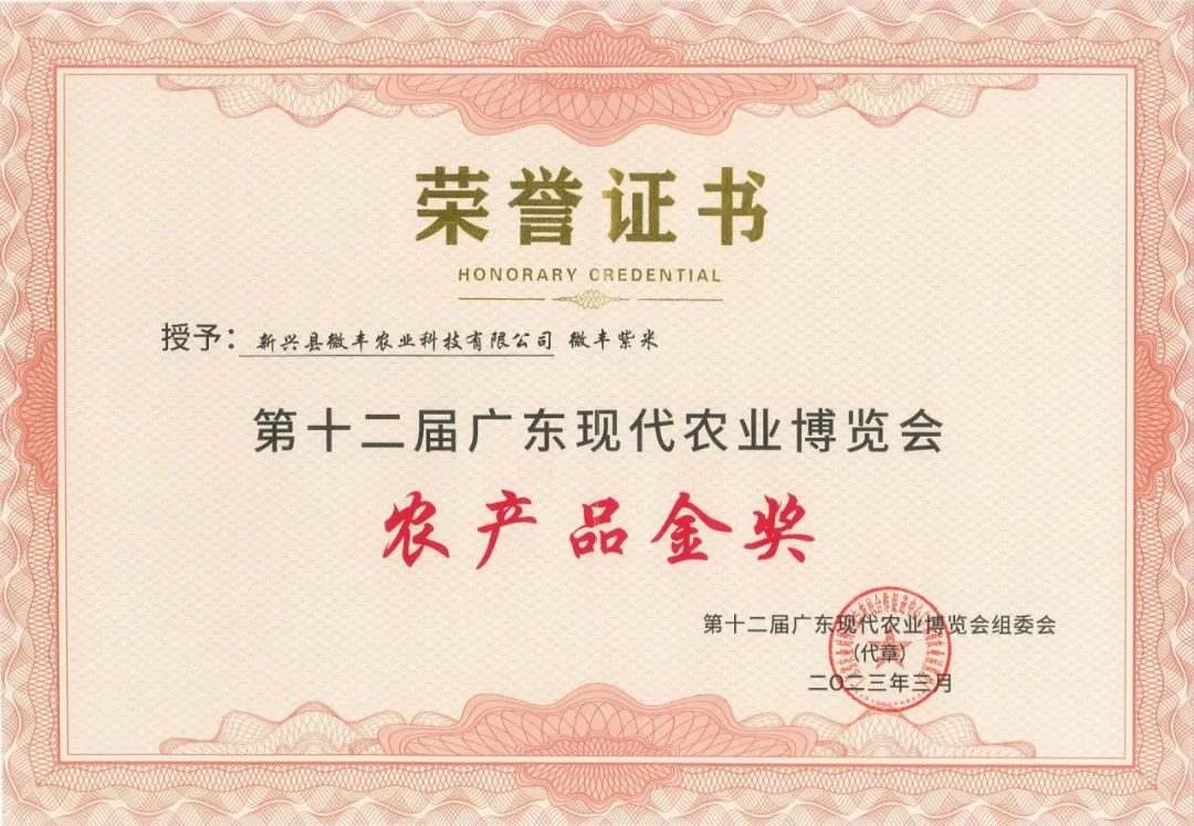 2023年3月,太阳成集团tyc522cc员工、新兴县微丰农业科技有限公司总经理郑经绍带领团队所打造的“微丰紫米”斩获第十二届广东现代农业博览会农产品金奖。在此次农博会中,“新兴微丰”凭借...